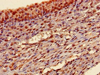 • Immunohistochemistry of paraffin-embedded human ovarian cancer using CSB-PA00804A0Rb at dilution of 1:100