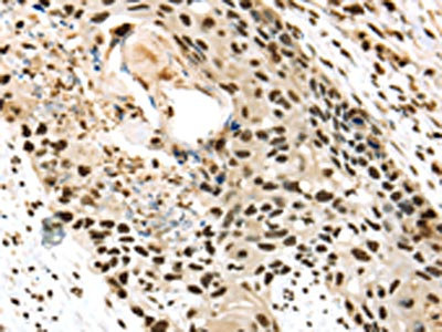 • The image on the left is immunohistochemistry of paraffin-embedded Human esophagus cancer tissue using CSB-PA977634(TALDO1 Antibody) at dilution 1/30, on the right is treated with fusion protein. (Original magnification: ×200)