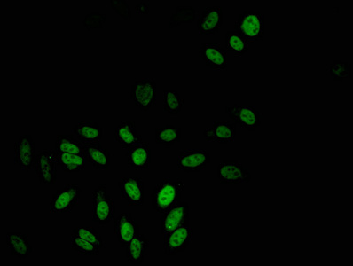 • Immunofluorescent analysis of Hela cells using CSB-PA023234LA01HU at dilution of 1:100 and Alexa Fluor 488-congugated AffiniPure Goat Anti-Rabbit IgG(H+L)