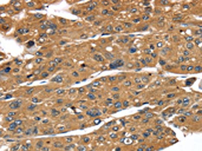 • The image on the left is immunohistochemistry of paraffin-embedded Human liver cancer tissue using CSB-PA199259(TBX10 Antibody) at dilution 1/35, on the right is treated with fusion protein. (Original magnification: ×200)