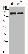 • Western Blot analysis of KB HELA cells using CD284 Polyclonal Antibody