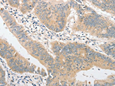 • The image on the left is immunohistochemistry of paraffin-embedded Human colon cancer tissue using CSB-PA776633(TLR4 Antibody) at dilution 1/40, on the right is treated with fusion protein. (Original magnification: ×200)