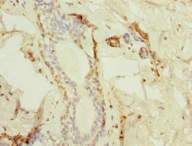 Immunohistochemistry of paraffin-embedded human breast cancer using CSB-PA05049A0Rb at dilution of 1:100