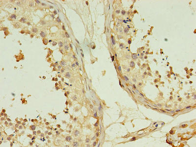 Immunohistochemistry of paraffin-embedded human testis tissue using CSB-PA023711EA01HU at dilution of 1:100