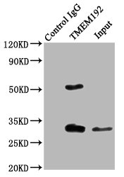 Immunoprecipitating TMEM192 in Jurkat whole cell lysate