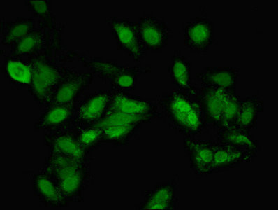 Immunofluorescent analysis of Hela cells using CSB-PA867136LA01HU at dilution of 1:100 and Alexa Fluor 488-congugated AffiniPure Goat Anti-Rabbit IgG(H+L)