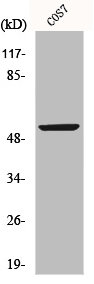 • Western Blot analysis of COS7 cells using p53 Polyclonal Antibody