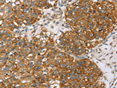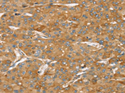 The image on the left is immunohistochemistry of paraffin-embedded Human liver cancer tissue using CSB-PA291759(TPD52L2 Antibody) at dilution 1/35, on the right is treated with synthetic peptide. (Original magnification: ×200)