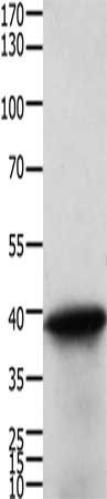 Gel: 10%SDS-PAGE, Lysate: 40 μg, Lane: Human cervical cancer tissue, Primary antibody: CSB-PA077768(TPM2 Antibody) at dilution 1/600, Secondary antibody: Goat anti rabbit IgG at 1/8000 dilution, Exposure time: 2 minutes