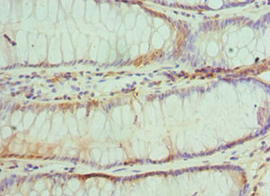 Immunohistochemistry of paraffin-embedded human colon cancer using CSB-PA621879ESR2HU at dilution of 1:100