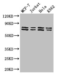 Positive WB detected in: MCF-7 whole cell lysate, Jurkat whole cell lysate, Hela whole cell lysate, K562 whole cell lysate