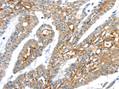 • The image on the left is immunohistochemistry of paraffin-embedded Human ovarian cancer tissue using CSB-PA236753(TRIM47 Antibody) at dilution 1/30, on the right is treated with synthetic peptide. (Original magnification: ×200)