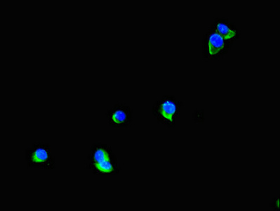 • Immunofluorescent analysis of Hela cells using CSB-PA012188LA01HU at dilution of 1:100 and Alexa Fluor 488-congugated AffiniPure Goat Anti-Rabbit IgG(H+L)