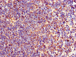 Immunohistochemistry of paraffin-embedded human lymph node tissue using CSB-PA025362LA01HU at dilution of 1:100