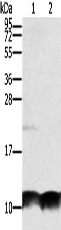 • Gel: 8%SDS-PAGE, Lysate: 40 μg, Lane 1-2: Hela cells, mouse liver tissue, Primary antibody: CSB-PA118714(UBB Antibody) at dilution 1/300, Secondary antibody: Goat anti rabbit IgG at 1/8000 dilution, Exposure time: 40 seconds