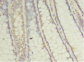 Immunohistochemistry of paraffin-embedded human colon cancer using CSB-PA025440LA01HU at dilution of 1:100