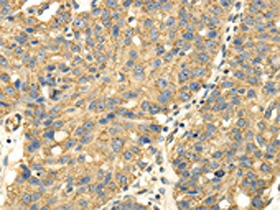 The image on the left is immunohistochemistry of paraffin-embedded Human liver cancer tissue using CSB-PA936276(UHRF1BP1 Antibody) at dilution 1/25, on the right is treated with synthetic peptide. (Original magnification: ×200)