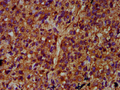 • IHC image of CSB-PA811629LA01HU diluted at 1:400 and staining in paraffin-embedded human glioma performed on a Leica BondTM system. After dewaxing and hydration, antigen retrieval was mediated by high pressure in a citrate buffer (pH 6.0). Section was blocked with 10% normal goat serum 30min at RT. Then primary antibody (1% BSA) was incubated at 4°C overnight. The primary is detected by a biotinylated secondary antibody and visualized using an HRP conjugated SP system.