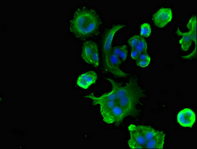 Immunofluorescent analysis of MCF-7 cells using CSB-PA891559LA01HU at dilution of 1:100 and Alexa Fluor 488-congugated AffiniPure Goat Anti-Rabbit IgG(H+L)