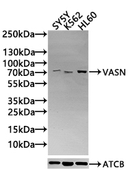 Positive WB detected in: SY5Y whole cell lysate(30μg), K562 whole cell lysate(30μg), HL60 whole cell lysate(30μg)
