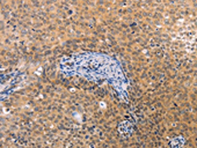 • The image on the left is immunohistochemistry of paraffin-embedded Human cervical cancer tissue using CSB-PA991849(VHL Antibody) at dilution 1/40, on the right is treated with fusion protein. (Original magnification: ×200)