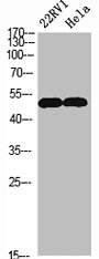 • Western Blot analysis of 22RV1 HELA cells using Vimentin Polyclonal Antibody