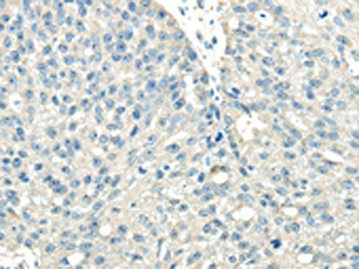 The image on the left is immunohistochemistry of paraffin-embedded Human breast cancer tissue using CSB-PA068002(VPS36 Antibody) at dilution 1/40, on the right is treated with synthetic peptide. (Original magnification: ×200)