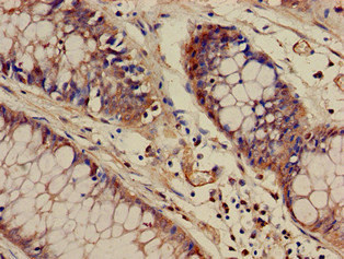 Immunohistochemistry of paraffin-embedded human colon cancer using CSB-PA852883LA01HU at dilution of 1:100