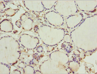 Immunohistochemistry of paraffin-embedded human thyroid tissue using CSB-PA026035ESR1HU at dilution of 1:100