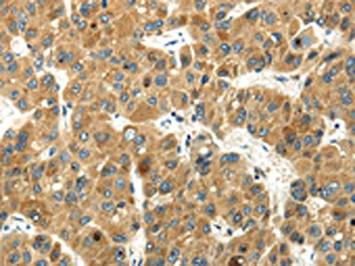 • The image on the left is immunohistochemistry of paraffin-embedded Human liver cancer tissue using CSB-PA826787(WFDC1 Antibody) at dilution 1/35, on the right is treated with synthetic peptide. (Original magnification: ×200)