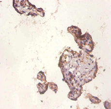 • Immunohistochemistry of paraffin-embedded human placenta tissue using CSB-PA15549A0Rb at dilution of 1:50