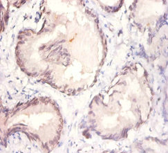 • Immunohistochemistry of paraffin-embedded human prostate tissue using CSB-PA15549A0Rb at dilution of 1:50
