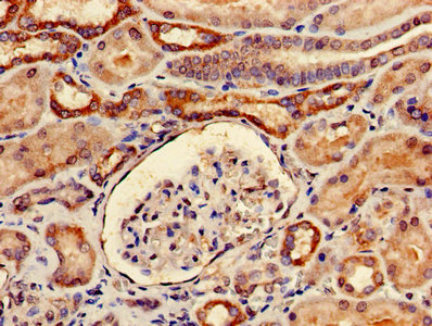 Immunohistochemistry of paraffin-embedded human kidney tissue using CSB-PA00465A0Rb at dilution of 1:100