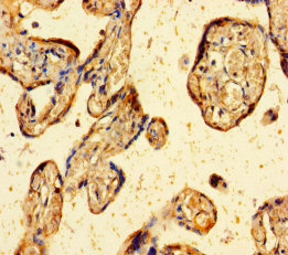 Immunohistochemistry of paraffin-embedded human placenta tissue using CSB-PA02715A0Rb at dilution of 1:100