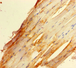 Immunohistochemistry of paraffin-embedded human skeletal muscle tissue using CSB-PA02715A0Rb at dilution of 1:100