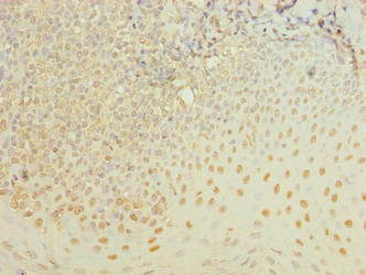 • Immunohistochemistry of paraffin-embedded human tonsil tissue using CSB-PA621889LA01HU at dilution of 1:100