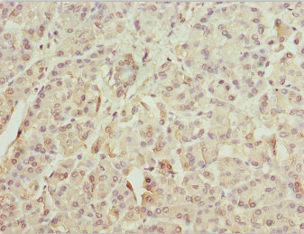 Immunohistochemistry of paraffin-embedded human pancreatic tissue using CSB-PA064019ESR1HU at dilution of 1:100