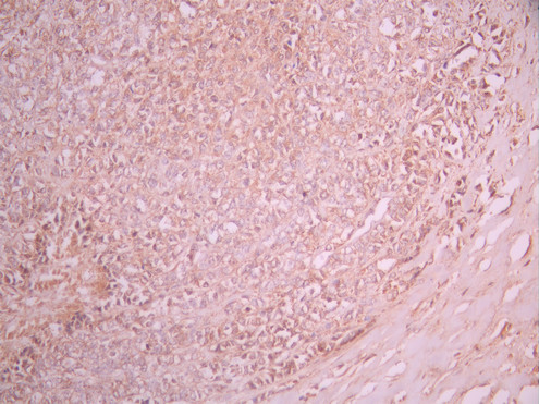 IHC image of CSB-RA131536A0HU diluted at 1:100 and staining in paraffin-embedded human breast cancer performed on a Leica BondTM system. After dewaxing and hydration, antigen retrieval was mediated by high pressure in a citrate buffer (pH 6.0). Section was blocked with 10% normal goat serum 30min at RT. Then primary antibody (1% BSA) was incubated at 4°C overnight. The primary is detected by a Goat anti-rabbit polymer IgG labeled by HRP and visualized using 0.05% DAB.