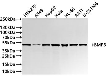 Positive WB detected in: HEK293 whole cell lysate(30μg), A549 whole cell lysate(30μg), HepG2 whole cell lysate(30μg), Hela whole cell lysate(30μg), HL-60 whole cell lysate(30μg), A431 whole cell lysate(30μg), U-251MG whole cell lysate(30μg)