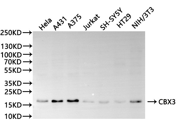 All lanes: CBX3 antibody at 1:1000