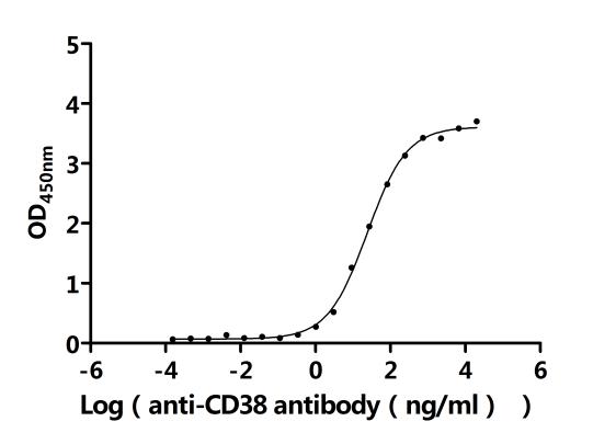 Activity: Measured by its binding ability in a functional ELISA.Immobilized Human CD38(CSB-MP004929HUc7) at 2 μg/mL can bind Anti-CD38 recombinant antibody. The EC50 is 7.073-8.315 ng/mL. -