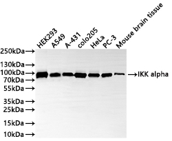 別名:chuk antibody; CHUK1 antibody; Conserved Helix Loop Helix Ubiquitous Kinase antibody; Conserved helix loop ubiquitous kinase antibody; Conserved helix-loop-helix ubiquitous kinase antibody; I Kappa B Kinase 1 antibody; I Kappa B Kinase Alpha antibody; I-kappa-B kinase 1 antibody; I-kappa-B kinase alpha antibody; IkappaB kinase antibody; IkB kinase alpha subunit antibody; IkBKA antibody; IKK 1 antibody; IKK A antibody; IKK a kinase antibody; IKK-A antibody; IKK-alpha antibody; IKK1 antibody; IKKA antibody; IKKA_HUMAN antibody; Inhibitor Of Kappa Light Polypeptide Gene Enhancer In B Cells antibody; Inhibitor Of Nuclear Factor Kappa B Kinase Alpha Subunit antibody; Inhibitor of nuclear factor kappa-B kinase subunit alpha antibody; NFKBIKA antibody; Nuclear Factor Kappa B Inhibitor Kinase Alpha antibody; Nuclear factor NF kappa B inhibitor kinase alpha antibody; Nuclear factor NF-kappa-B inhibitor kinase alpha antibody; Nuclear factor NFkappaB inhibitor kinase alpha antibody; Nuclear Factor Of Kappa Light Chain Gene Enhancer In B Cells Inhibitor antibody; TCF-16 antibody; TCF16 antibody; Transcription factor 16 antibody
