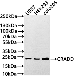 別名:CASP2 and RIPK1 domain containing adaptor with death domain antibody; Caspase and RIP adapter with death domain antibody; Caspase and RIP adaptor with death domain antibody; Cradd antibody; CRADD_HUMAN antibody; Death adaptor molecule RAIDD antibody; Death domain containing protein CRADD antibody; Death domain-containing protein CRADD antibody; MGC9163 antibody; RIP associated ICH1/CED3 homologous protein with death domain antibody; RIP associated protein with a death domain antibody; RIP-associated protein with a death domain antibody