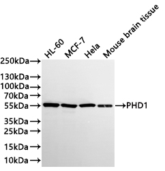 Positive WB detected in: HL-60 whole cell lysate(30μg), MCF-7 whole cell lysate(30μg), Hela whole cell lysate(30μg), Mouse brain tissue lysate(30μg)