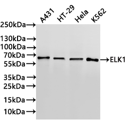 Positive WB detected in: A431 whole cell lysate(30μg), HT-29 whole cell lysate(30μg), Hela whole cell lysate(30μg), K562 whole cell lysate(30μg)
