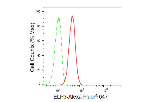 Flow cytometric analysis of ELP3 expression in C2C12 cells using ELP3 antibody. Green, isotype control; red, ELP3.