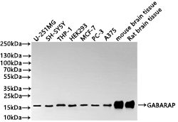 Positive WB detected in: U-251MG whole cell lysate(30μg), SH-SY5Y whole cell lysate(30μg), THP-1 whole cell lysate(30μg), HEK293 whole cell lysate(30μg), MCF-7 whole cell lysate(30μg), PC-3 whole cell lysate(30μg), A375 whole cell lysate(30μg), Mouse brain tissue lysate(30μg), Rat brain tissue lysate(30μg)