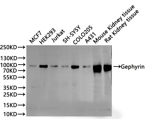 免疫原:A synthesized peptide from human GPHN protein