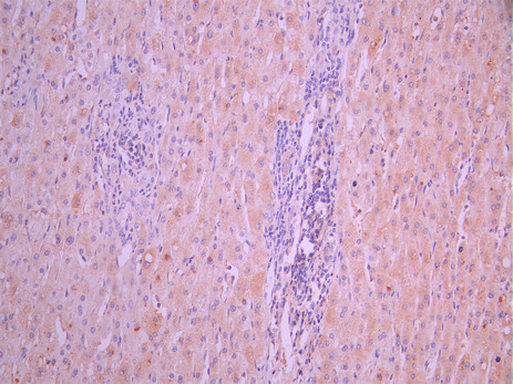 IHC image of CSB-RA67589MA1HU diluted at 1:50 and staining in paraffin-embedded human liver cancer performed on a Leica BondTM system. After dewaxing and hydration, antigen retrieval was mediated by high pressure in a citrate buffer (pH 6.0). Section was blocked with 10% normal goat serum 30min at RT. Then primary antibody (1% BSA) was incubated at 4°C overnight. The primary is detected by a Anti-Human lgG, Fcy Fragment Specific labeled by HRP and visualized using 0.05% DAB.