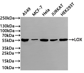 lox antibody; LYOX antibody; LYOX_HUMAN antibody; Lysyl oxidase antibody; MGC105112 antibody; Protein lysine 6 oxidase antibody; Protein-lysine 6-oxidase antibody